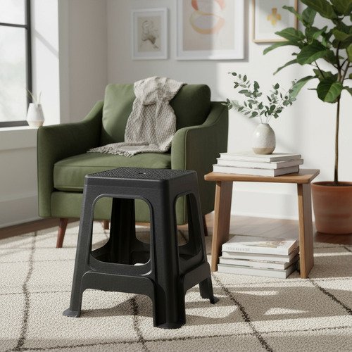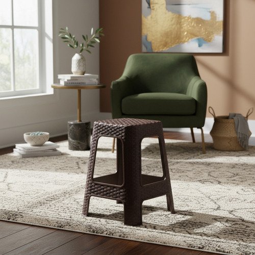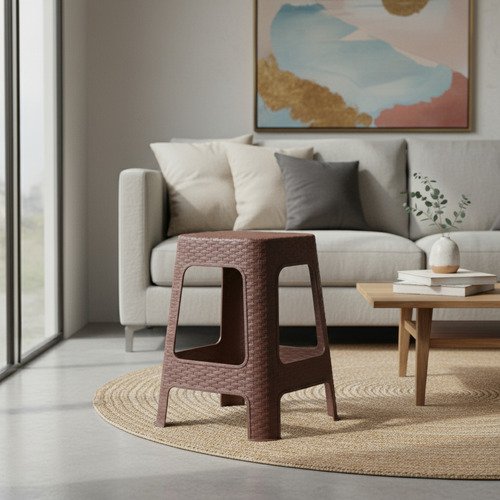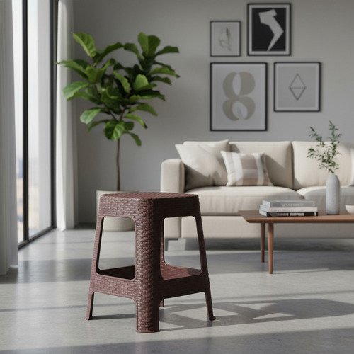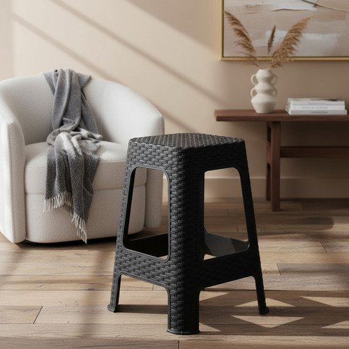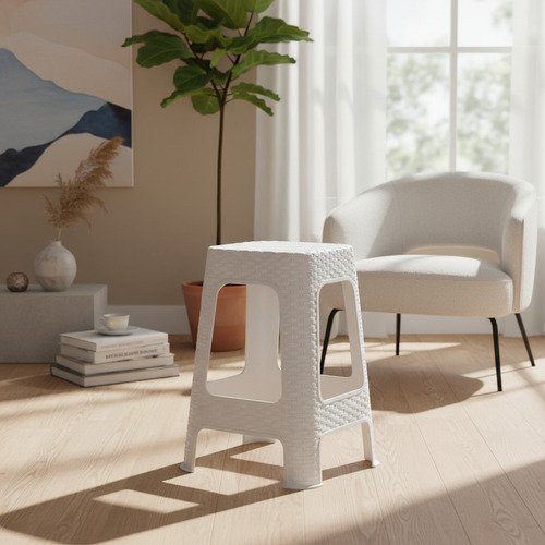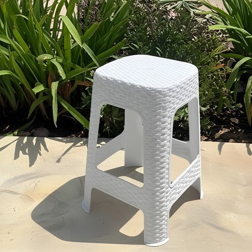 Banqueta Banquito Apilable Símil Ratan Plástico Babymovil Color Blanco