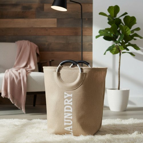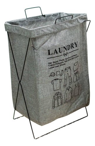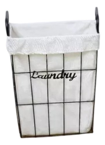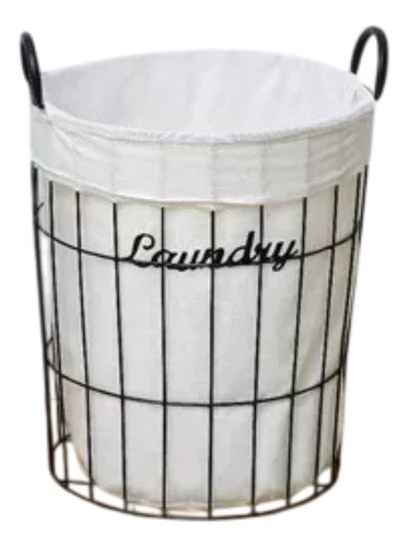 Gris Canasto Metálico Forrado En Tela Ideal P/ Ropa Vintage Retro