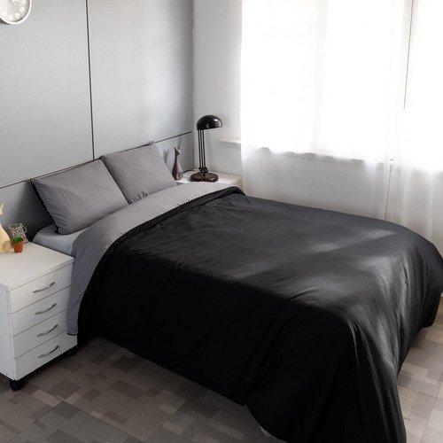 Funda Nordica De Edredon Reversible Con Funda Twin Size Color Negro – Gris