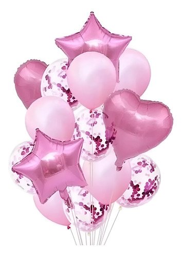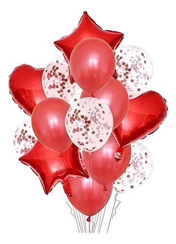 Set 14 Globos Con Corazones Y Estrellas 45cm Varios Colores