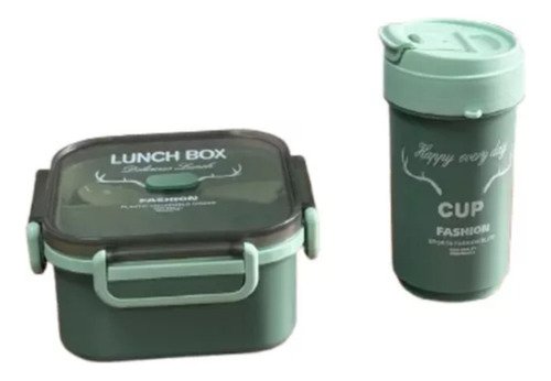 NEGRO Set Lunchera Hermético Con Divisiones Vianda Escolar Vaso