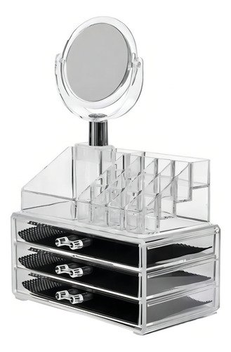 Organizador Acrílico De Maquillajes Y Cosméticos Con Espejo Color Transparente