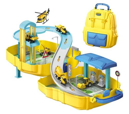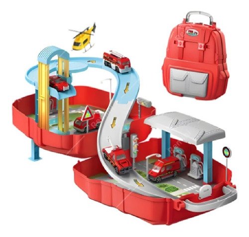 Juguete Mochila Pista De Autos Policia Bombero Construccion Color Rojo