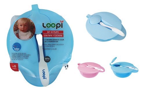 violeta Plato Bowl Con Tapa Y Cuchara Para Bebes Pure Comida Loopi Color Azul Liso Personaje Color