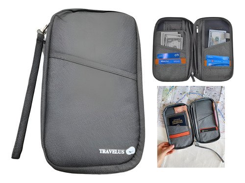 Organizador Porta Documentos Pratys Gris Para Viaje Con Correa Liso