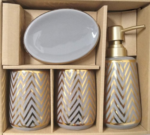 Gris Set De Baño Ceramica Dispenser Jabonera X4