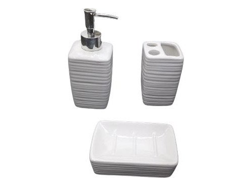 Set De Baño Porcelana 3 Piezas Dispenser Jabonera Vaso