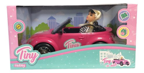Muñeca 30 Cm Tiny Con Su Auto De Paseo Con Sticker Tun Tuni Color Auto Rosa Sebigus
