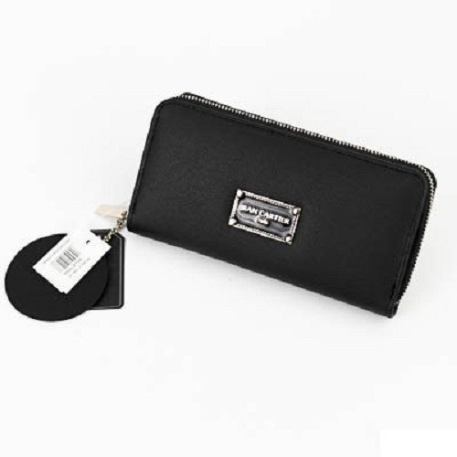 NEGRO Billetera Fichero Mujer Jean Cartier 100% Original 2 Cierres