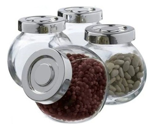 Naranja Especiero Fijo Vidrio Piu Online 4 Frascos Mesa Tapa Plástica Metalizada Vidrio Tapa Metalizada