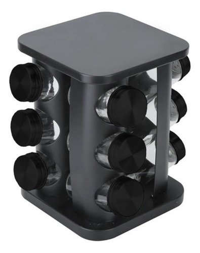 Especiero Cocina Giratorio 12 Condimentos Negro Relieve Tapa