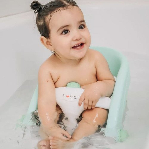 » Características: * Plegable para guardar.* Reclinable para enjuagar la cabeza.* Apertura del barral para colocar y liberar al bebé.* Juguete giratorio con sonido.* 3 sopapas para adherir a la bañera.