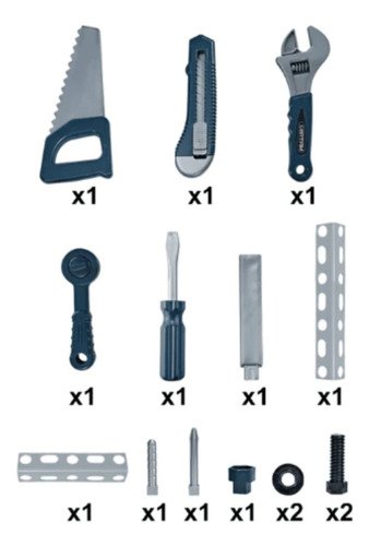 La valija incluye una variedad de herramientas que fomentan la imaginación y el desarrollo de habilidades motoras. Ideal para niños que disfrutan de jugar a ser ingenieros o carpinteros. Este juguete no solo entretiene, sino que también enseña conceptos básicos de construcción y trabajo en equipo.