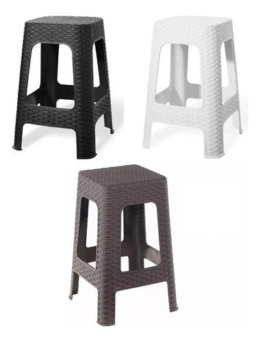 Banqueta Banquito Apilable Símil Ratan Plástico Babymovil Color Blanco