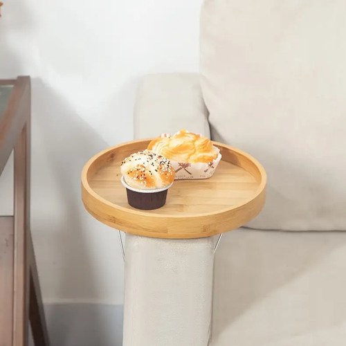Bandeja Mesa Auxiliar Sillon Redonda Bambu Con Ajuste