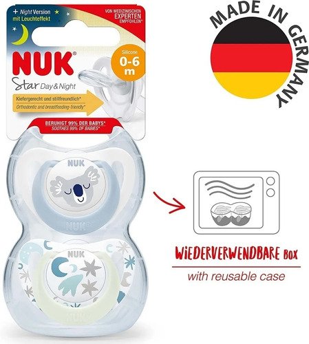 Los padres pueden contar con él. ¿No es genial cuando hay algo en lo que siempre pueden confiar? El chupete NUK Star es justamente eso. Fue comprobado que el 99% de los bebés se pueden calmar al succionarlo. El 96 % de las madres que amamantan aprecian que sea compatible con el amamantamiento. Y más del 90% de los ortodoncistas lo recomiendan por su forma adecuada para la mandíbula. * ¿Qué más se puede pedir?