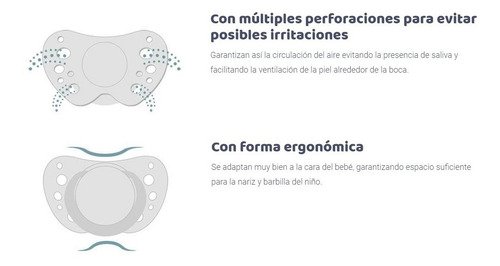 Como el resto de chupetes Chicco, con tetina PHYSIO ACTIVE que favorece activamente el correcto desarrollo de la boca: Facilita la colocación de la lengua en su posición natural; distribuye la presión de forma homogénea sobre el paladar y con base extra fina, para facilitar el cierre adecuado de la boca y evitar futuras deformaciones de los dientes.