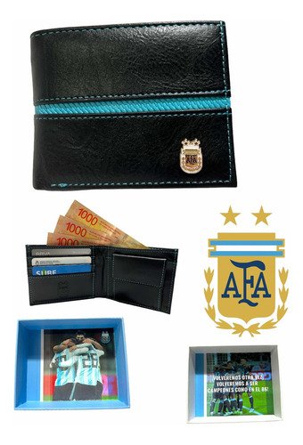 Billetera Afa + Caja Ideal Unico + Argentina Pasión Color Negro