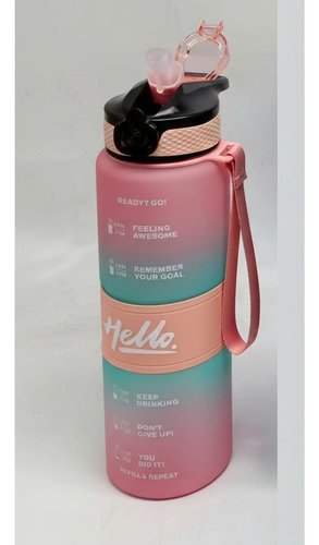 Botella Motivacional Agua Gimnasio 1 Litro Con Pico Goma Color Rosa