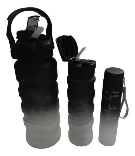 Set De 3 Botellas Deportiva Motivacional Medidor Gimnasio Color Negro