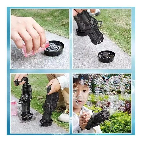 Cuenta con 8 agujeros de burbujas únicos, que pueden soplar cientos de burbujas de colores por minuto. La forma realista y las burbujas coloridas les encantan a los niños.