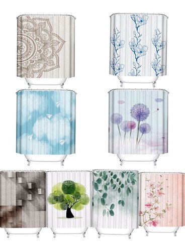 Cortina Baño Estampada Premium Quality 180×180 Con Ganchos