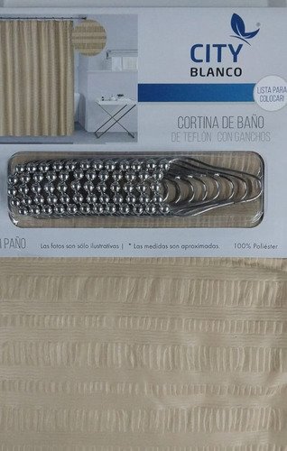 Cortina Baño Tela Teflón Ganchos Acero City Blanco Color Beige Lisa