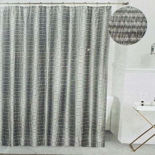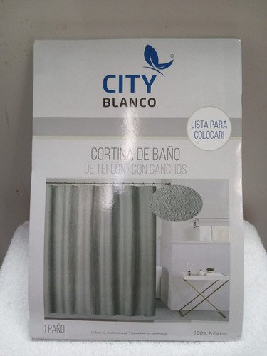 Cortina De Baño City Blanco Con Teflon Y Ganchos Liso Color Gris Oscuro Teflon Con Ganchos
