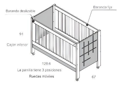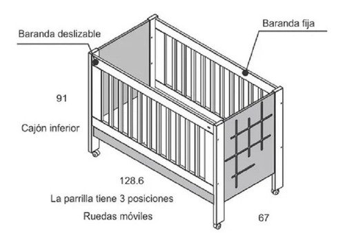 • 3 en 1: 1- Cuna 2- Escritorio 3- Moises