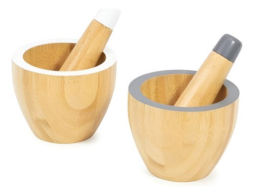 Mortero De Bambu 12x10cm Triturador De Cocina Color Bambu Con Gris