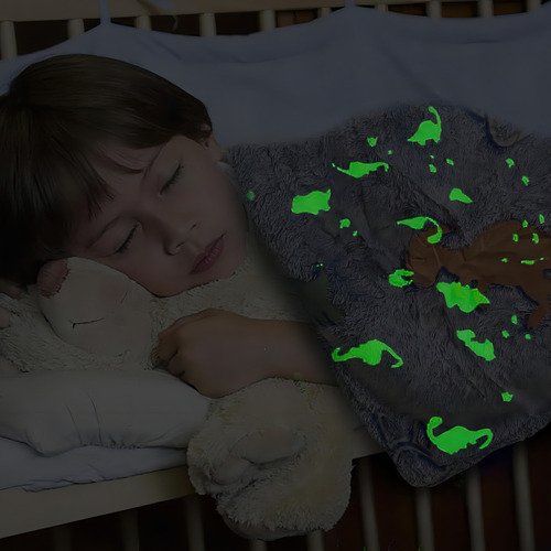 Manta Frazada Luminosa Soft Brilla En Oscuridad 1 1/2 Plaza Color Dino Diseño De La Tela Estampado
