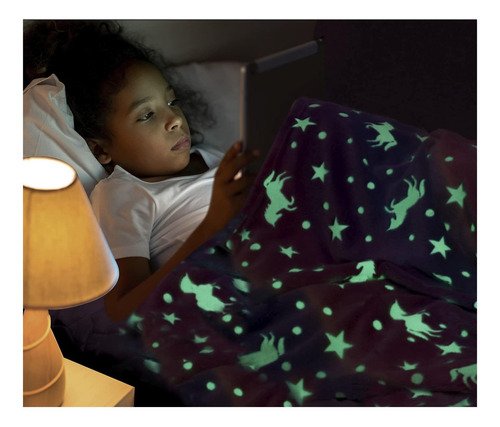 Manta Frazada Luminosa Soft Brilla En Oscuridad 1 1/2 Plaza Color Unicornio Arcoiris Diseño De La Tela Estampado