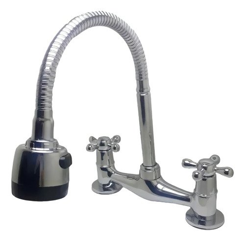 Canilla Mesada Griferia Cuello Flexible Lluvia Doble Comando Acabado Brillante Color Cromado