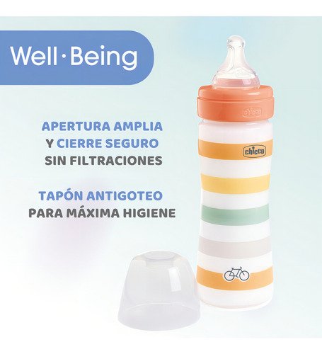 Mamadera Silicona Chicco Wellbeing 250ml 2m+ F.medio Naranja Well Being