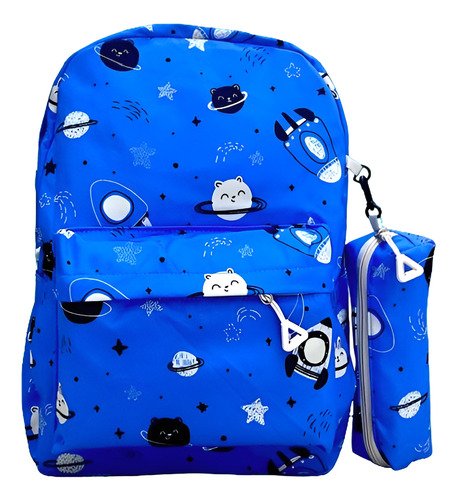 Mochila Infantil Zaki Kawaii Celeste Poliéster Viaje Con Cartuchera