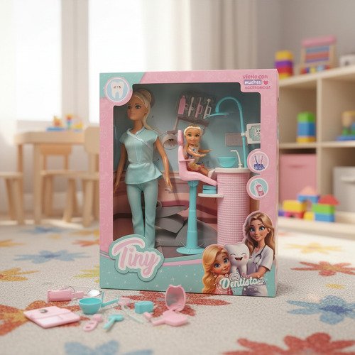 Muñeca Dentista Tiny 30cm Articulada Con Accesorios