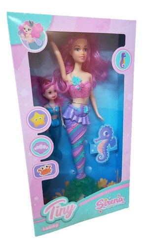 Muñeca Sirena Luz Con Mini Sirenita Vs Colores Tiny Fantasy