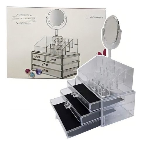Organizador Acrílico De Maquillajes Y Cosméticos Con Espejo Color Transparente