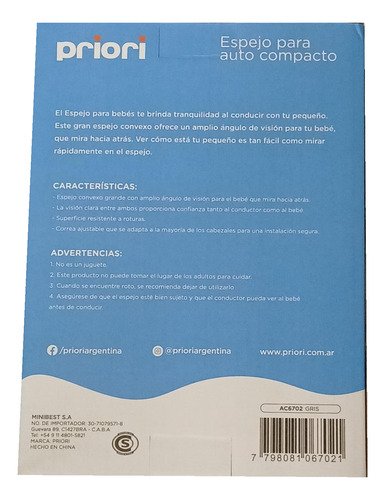 SKU: AC6702 Categoría: Otros Etiquetas: 0 %, 21 %, 7798081067021, AC6702, Espejo para Auto compacto, No, Nuevo, Priori, vppfull