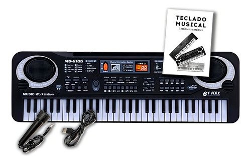 Teclado De Juguete Meike Mq6106 61 Teclas 16 Sonidos Color Negro Con Micrófono