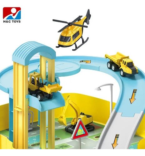 Juguete Pista Autos Mochila Policia Bombero Construccion Color Amarillo