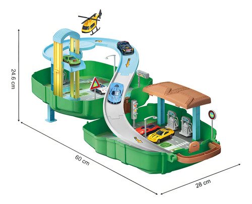 Juguete Pista Autos Mochila Policia Bombero Construccion Color Verde