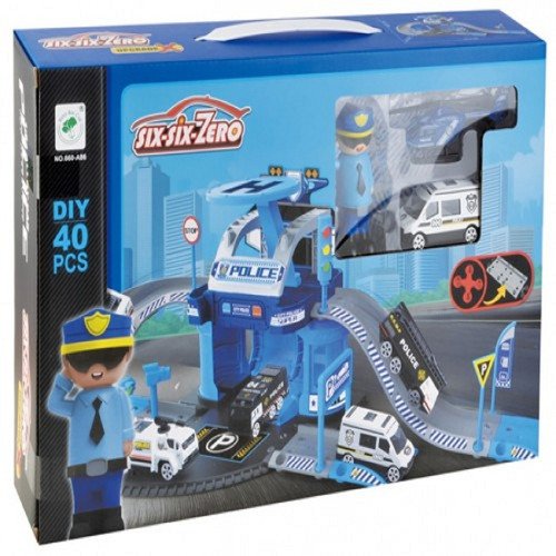 Estación de policía, incluye 1 camioneta,1 helicóptero y 1 policía. Total 40 piezas.