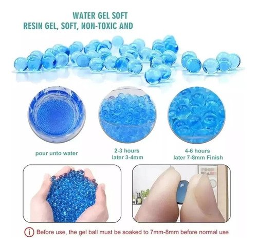 * Antes de Cargar debes dejar en remojo las bolitas de hidogel hasta que lleguen a 7-8mm.( 8 horas)