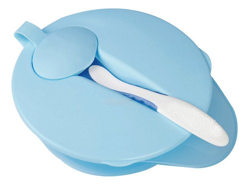 Plato Bowl Con Tapa Y Cuchara Para Bebes Pure Comida Loopi Color Azul Liso Personaje Color