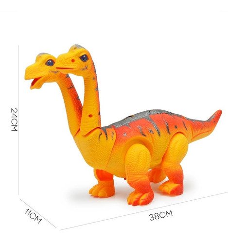Juguete Dinosaurio 2 Cabezas Luz Sonido Camina Huevos 40 Cm