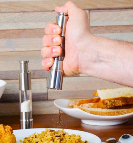 Molinillo De Pimienta Pimentero A Piston Acero Inox 14 Cm