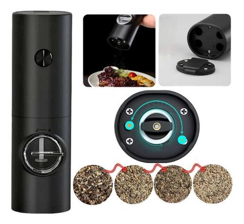 Pimentero Eléctrico Automático C/ Luz Led Molinillo 18cm Color Negro