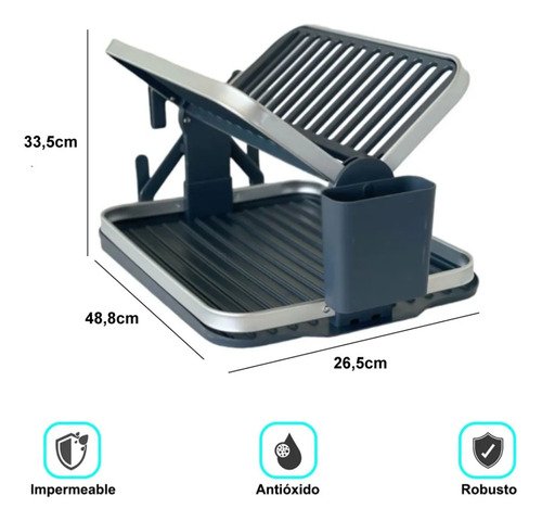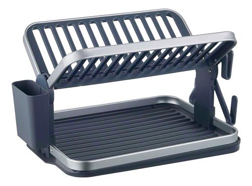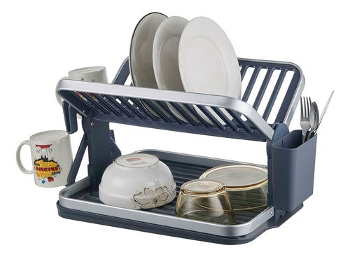 Escurridor Platos Aluminio Plegable 2 Niveles Azul Y Gris Azul Y Gris
