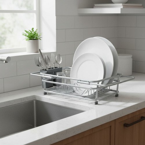 • Escurridor de platos Premium, fabricado con estructura de aluminio liviano y resistente al óxido y la humedad.